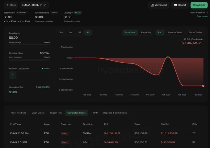 도박꾼 0x15a4는 포기하고 $ETH 숏 포지션을 청산하여 단 몇 시간 만에 130만 달러의 손실을 입었습니다. 그는 이후 하이퍼리퀴드에서 남은 자금을 인출했습니다. 그리고 카지노를 떠났다. twitter.com/lookonchain/status...