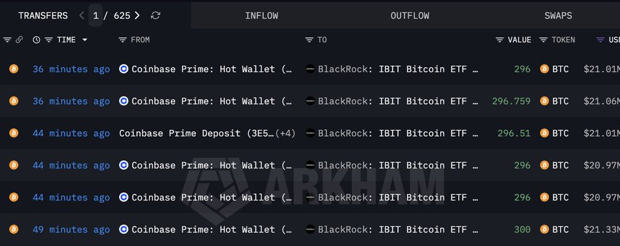 블랙록은 비트코인(BTC) 계속해서 축적하고 있으며, 어제 순유입액은 4,172 비트코인(BTC)(3억 300만 달러)에 달했습니다. 2월 24일 이후 블랙록에는 총 21,814 비트코인(BTC)(15억 8천만 달러)의 순유입이 있었습니다. ishares.com/us/products/333011...… twitter.com/lookonchain/status...