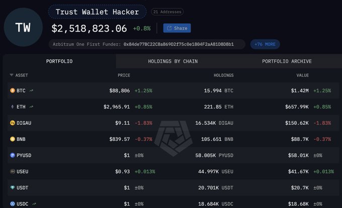 트러스트 월렛(@TrustWallet)이 해킹 공격을 받아 수백 명의 사용자가 피해를 입었고 현재까지 677만 달러 이상이 도난당했습니다.