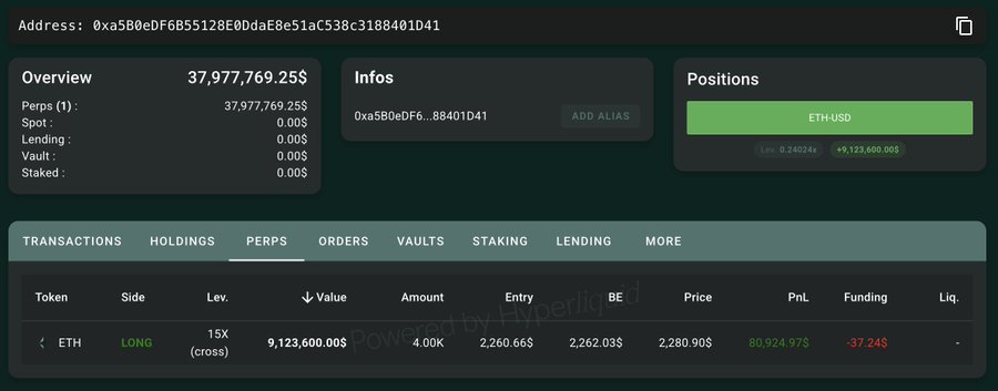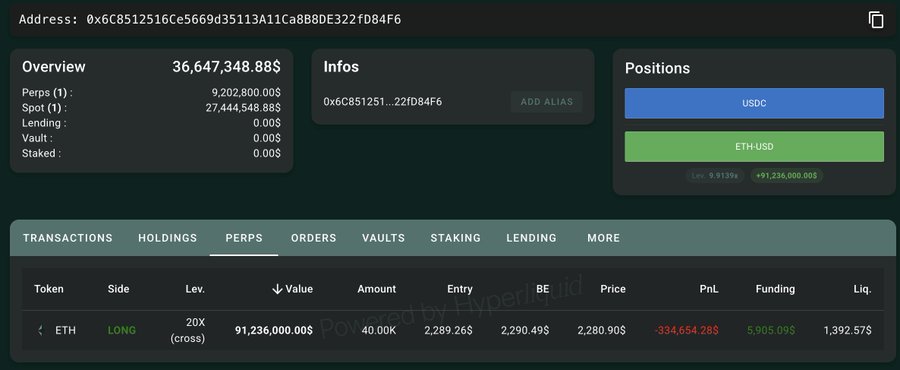 #매트릭스포트와 연관된 고래 투자자가 이전에 5,900만 달러의 수익을 올린 데 이어, 이번에는 44,000 이더리움(ETH)(1억 달러) 규모의 롱 포지션을 개설했습니다. hypurrscan.io/address/0x6C8512...… hypurrscan.io/address/0xa5B0eD...… twitter.com/lookonchain/status...