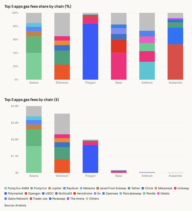 → Ethereum / Base / 아비트럼(Arbitrum): 25%를 넘는 단일 앱 없음