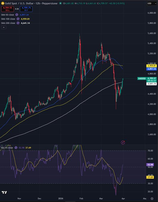 금 가격이 크게 반등하면서 조정은 확실히 끝난 것 같습니다. 새로운 사상 최고치를 향해 가고 있습니다. twitter.com/Bluntz_Capital/sta...