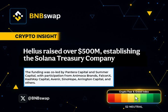 Helius Medical Technologies는 Solana에 초점을 맞춘 트레져리 회사를 시작하기 위해 5억 달러 이상을 모금했습니다. 이 자금 조달은 판테라(Pantera Capital) 과 Summer 자본 공동으로 주도하였고, 애니모카 브랜즈, FalconX, 해쉬키 캐피탈(Hashkey Capital), Avenir, SinoHope, 아링턴 캐피탈(Arrington Capital) 등이 참여했습니다.