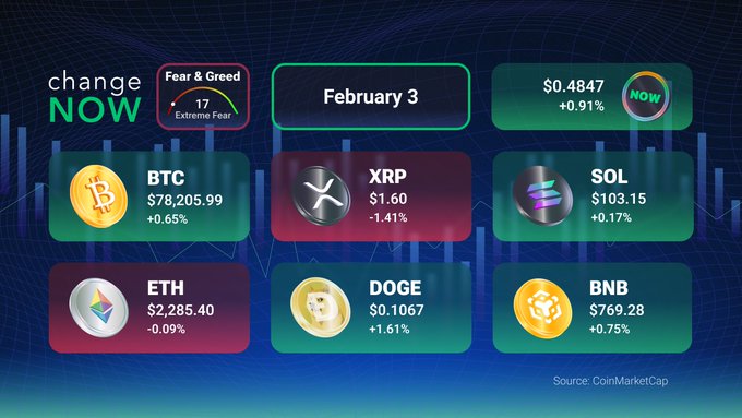 GM(Good Morning), ChangeNOW 가족 여러분 🌅 암호화폐 시장은 또 한 번 하락세를 보였습니다. $BTC은 약 11% 하락 후 7만 8천 달러 부근에서 거래되고 있으며, 알트코인들도 소폭의 장중 반등만 보이며 비슷한 흐름을 이어가고 있습니다. 변동성은 결함이 아니라 특징입니다. 스스로 조사하고 항상 주의를 기울이세요.