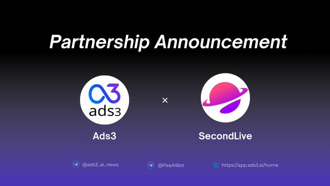 🤝 @ads3_ai와의 새로운 파트너십을 발표하게 되어 매우 기쁩니다. 🪧 Ads3는 소셜 네트워크 사용자 10억 명을 탈중앙화된 미래로 연결하는 것을 목표로 하는 선도적인 웹3 광고 인텔리전스 플랫폼입니다. 👀 앞으로 저희와의 협력에 대한 더 많은 소식을 기대해 주세요! twitter.com/SecondLiveReal/sta...