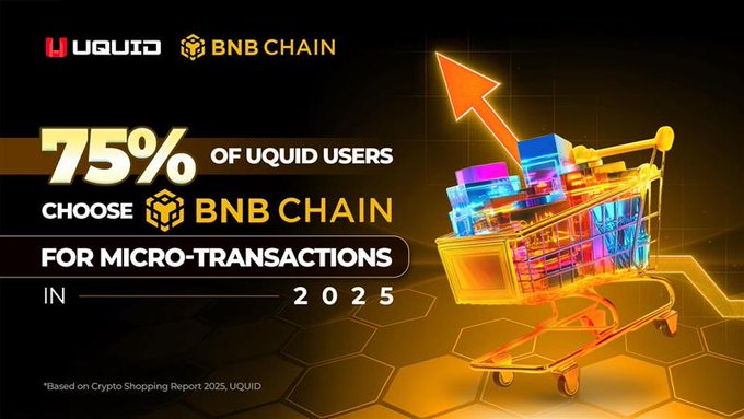 2025년에는 Uquid 사용자 중 75%가 소액 결제 수단으로 @BNBCHAIN을 선택할 것입니다. 저희 암호화폐 쇼핑 보고서에서는 다음과 같이 밝혔습니다. "2025년 웹3 도입을 예고하는 가장 확실한 신호 중 하나는 Total Value Locked(TVL) 이나 가격 차트에서 나온 것이 아니라, 소비 행태에서 나타났습니다." 이는 암호화폐가 실제로 일상적으로 사용되는 방식을 반영하는 저가치 고빈도 구매입니다.