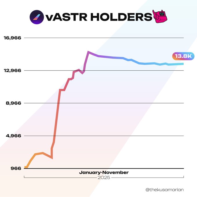 바이프로스트(Bifrost) 유동성 스테이킹 플랫폼이 vASTR 보유자 수의 엄청난 증가로 2025년을 압도적으로 장식할 전망입니다! 2026년에는 어떤 일이 일어날까요? 더 많은 콘텐츠를 보려면 The Kus를 팔로우하세요! ❤️