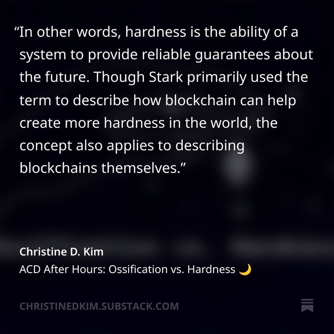 @0xstark의 블록체인 "하드니스" 개념에 대해 더 자세히 알고 싶으신 독자분들은, 제가 그와 @berggruenInst의 Nils Gilman과 함께 진행한 인터뷰를 참고해 보세요. 이 인터뷰에서는 해당 개념에 대해 더 자세히 논의했습니다. youtube.com/watch?v=GUxwGds2uJ...…