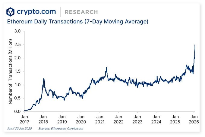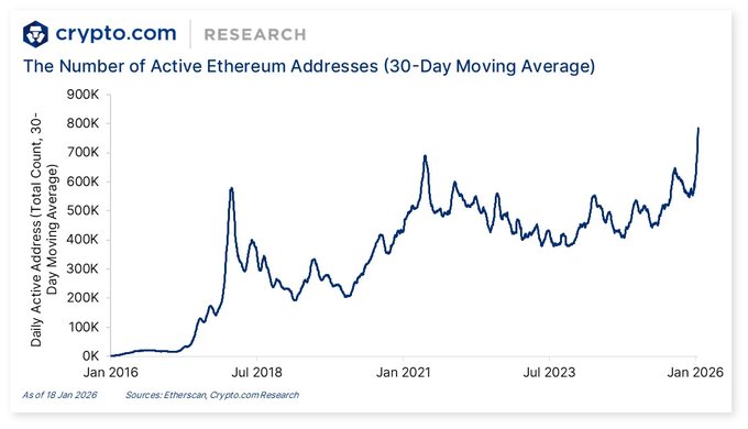 암호화폐 시장 동향: 🔼 이더리움 일일 활성 주소(30일 이동평균)가 10년 만에 최고치를 기록했습니다. 🇦🇪 EmCoin과 @cryptocom이 UAE 사용자들을 위한 디지털 자산 거래 확대를 위해 협력합니다. 🤝 High Roller Technologies가 @cryptocom과 예측 시장 관련 파트너십을 체결했습니다. 자세한 내용은 아래를 참조하세요. 👇 crypto.com/market-updates/cryp...…