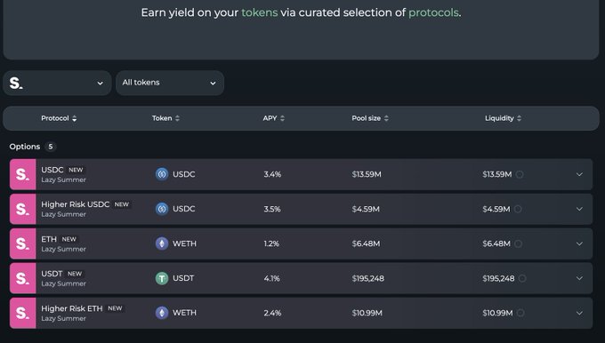 이것이 바로 @DeFiSaver에서 현재 수익률을 확인할 수 있는 모습입니다. Lazy Summer 볼트: - $USDC - $ETH - $USDT - 고위험 전략 $USDC & $ETH 모든 프로토콜에서 포지션을 수동으로 관리할 필요 없이 한 곳에서 모든 정보에 접근할 수 있습니다. 파편화 감소. 더 나은 협업.