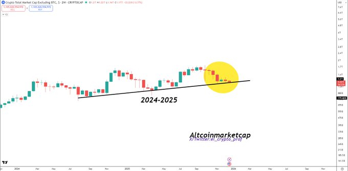 TOTAL2는 1년 반 동안 이어져 온 추세선상에 있습니다. 지금이 바로 기회입니다. 👀🔥