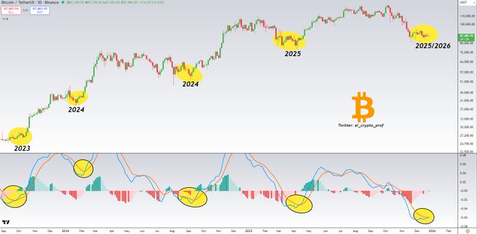 #비트코인 와, 드디어 일어났네요! $BTC이 MACD 3D 차트에서 강세 크로스를 형성했습니다.👀🔥 이전 네 번의 경우 모두 최소 66%의 상승세를 보였습니다. 이대로라면 비트코인 가격은 14만 달러까지 오를 겁니다.