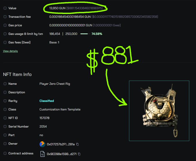 나는 이 <OFF THE GRID> 아이템을 메인넷에서 13,950 $GUN 토큰($881 미국 달러)에 판매했습니다. 나는 단순히 게임을 플레이하고 초기 참여자였기 때문에 이를 획득했습니다.