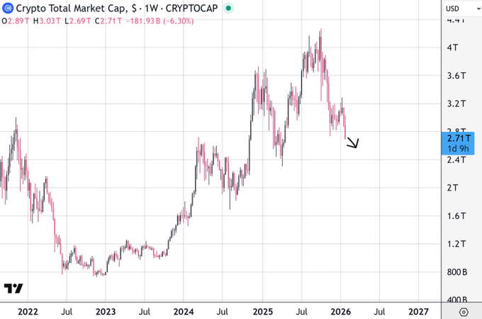 고양이 2026년 1분기 생각 솔직히 말해서, 좋은 아이디어를 내놓기는 어렵고, 당신의 아이디어는 빠르게 변화하는 세상에 순식간에 묻혀버릴 수 있어요. 전부 매도(Capitulation) 이미 오래전부터 예견되어 왔습니다. 다른 모든 자산은 반등했지만 비트코인(BTC) 그렇지 못했습니다. 금 보관과 비트코인 자체 보관에 관한 좋은 논문을 찾아볼 만합니다. twitter.com/CL207/status/20176...