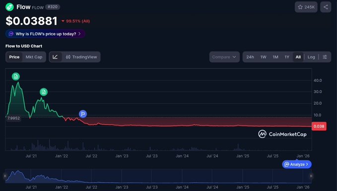 2021년에 Flow에 10,000달러를 투자했다면, 오늘날에는 9달러를 보유하게 됩니다. twitter.com/Only1temmy/status/...