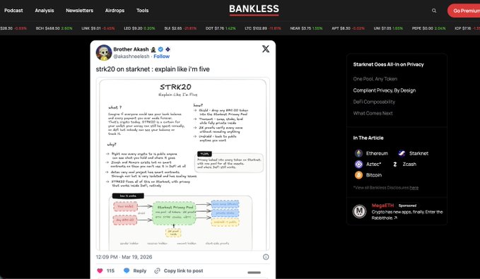 @Bankless의 새 기사에 어떤 트윗이 소개되었는지 확인해 보세요. 이 기사에서는 저희의 개인정보 보호 방침, STRK20에 대한 모든 것, 그리고 STRK20이 제공하는 기능에 대해 자세히 다룹니다. 아래 링크(Chainlink) 클릭하세요.