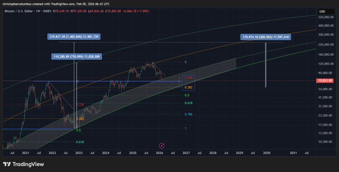 향후 투자자를 위한 보수적인 시나리오입니다. 현재 5만 8천 달러 내외에 매수하고, 3년 안에 4배 상승을 목표로 하는 보수적인 전망입니다.