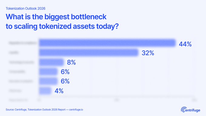 토큰화된 자산의 확장성을 실제로 좌우할 요소는 무엇이라고 생각하는지 150명의 운영자에게 물었습니다. 일부 답변은 예상과 일치했지만, 그렇지 않은 답변도 있었습니다. 토큰화 전망 2026이 곧 공개될 예정입니다. 기대해 주세요. twitter.com/centrifuge/status/...