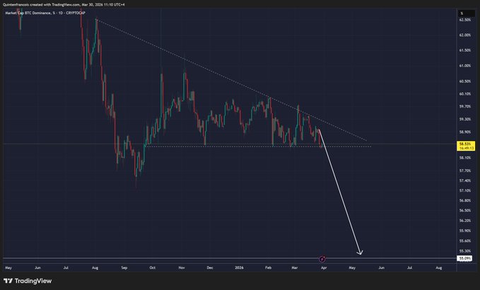 $ 비트코인(BTC).D는 새로운 저점을 기록할 준비가 되어 있으며, 당신은 아무것도 할 수 없습니다.