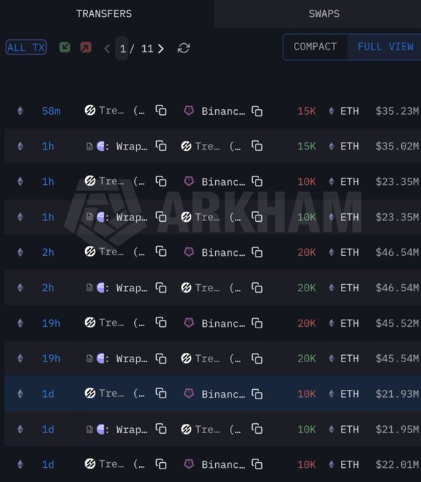 지난 2시간 동안 #TrendResearch는 총 45,000달러(약 1억 500만 달러)를 #Binance에 입금했습니다. 주소: intel.arkm.com/explorer/entity...…
