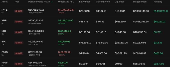 5시간 전에 이 고래는 $HYPE 및 $ 모네로(XMR) 에 대한 숏 포지션을 청산하기 시작했습니다. 그가 HYPE 주식을 공매도해서 손실을 봤지만, 투자 수수료 덕분에 손실의 65%를 만회할 수 있었습니다. 주소: legacy.hyperdash.com/trader/0x...…