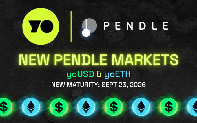 yoPendle의 새로운 장이 시작됩니다. yoUSD와 yoETH는 새로운 시장으로 롤오버되어 2026년 9월 23일에 만기가 도래합니다. 이제 여러분이 좋아하는 모든 @pendle_fi 활동을 Merkl을 통해 직접 스트리밍으로 즐기세요(YouTube 및 유동성 공급자(LP) 에서만 가능). 3월 25일 전에 포지션을 갱신하세요!