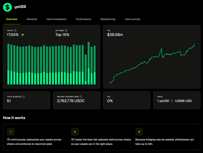 글로벌 스테이블코인 시가총액이 또다시 신고가 경신했습니다. yoUSD Total Value Locked(TVL) 또한 신고가 경신하며 4천만 달러에 육박하고 있습니다. 역대 8.2%의 수익률, 51가지 수익원, 그리고 @stablewatchHQ 스테이블코인 벤치마크를 능가하는 자체 수익률을 자랑합니다. 예금, 대출, 유동성 공급자(LP) 또는 루프를 통해 추가 12% 연이율 (연간 수익률) 보상을 받으세요.
