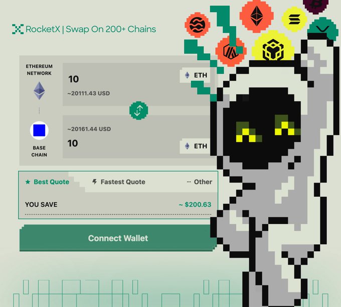 1/ 더 이상 여러 탭을 오가며 더 나은 환율을 찾을 필요가 없습니다. RocketX는 100개 이상의 거래소(중앙거래소 + 분산거래소)를 단 몇 초 만에 스캔하여 스왑에 대한 최상의 견적을 확보해 드립니다. 🚀 하나의 인터페이스, 풍부한 유동성, 간편한 거래.