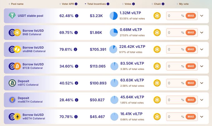 @Listapiexyz_io 투표 마켓에서 74번째 에포크가 한창 진행 중입니다!🌊 생태계 파트너들이 Listapie의 #veLISTA 투표권을 활용하고 풀 보상을 극대화하기 위해 $6,100 이상의 투표 인센티브를 예치했습니다!🔥 이번 에포크의 주요 내용: ⚡️@Lista_dao — 최대 79% APR (2024111120230) ⚡️@Babypiexyz_io — 40% APR (2024111120231) ⚡️@Eigenpiexyz_io — 28% APR (2024111120232) 아래 세부 정보를 확인하고 에포크가 종료되기 전에 투표하세요!🗳️