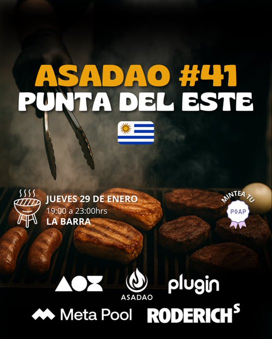🔥 @asadao_io #41이 곧 시작됩니다 🥩 이번에는 우루과이 푼타델에스테에서 만나요 🇺🇾 이번 주 목요일 저녁 7시, La Barra에서 만나요! 👉 여기에서 RSVP하세요: luma.com/j03denbr 자리가 한정되어 있습니다.