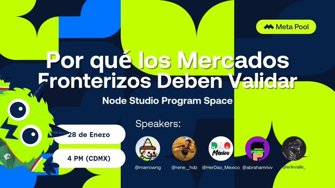 빌더들이 이제 더욱 중요한 역할을 맡게 되면서 생태계에 대한 더 큰 헌신이 요구되고 있습니다. 오늘은 Node Studio 2기 멕시코 검증자들과 함께 검증, 인프라, 교육에 대해 이야기해 보겠습니다. ⏰ 오후 4시 (멕시코시티) @abrahamrivv @rene__hdz @erikvalle_ @HerDao_Mexico