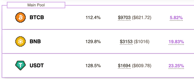 $BNB 매일 새로운 ATH를 선보이고 있는 Wombat Main Pool @BNBCHAIN의 LP들은 그 어느 때보다 행복합니다! 🤩 $BNB 스테이커의 경우 2468% APR $USDT 스테이커를 위한 5890% APR $ 비트코인(BTC).b 스테이커의 경우 842% APR 농담 아니고, 토큰 발행도 없습니다. 모두 수수료 공유(실제 수익률) 방식으로 이루어집니다. 그 수확량은 어디에 있나요?