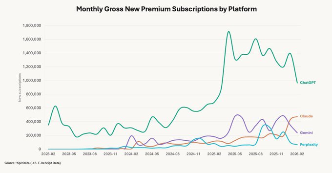 소비자 AI 분야에서 분위기 변화를 느끼셨다면, 당신만 그런 게 아닙니다 🤔 (h/t @yipitdata)