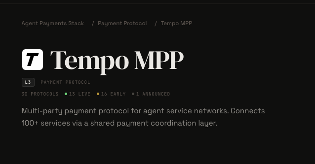 에이전트 결제 스택을 162개 프로젝트로 확장하고 새로운 측정 지표를 출시했습니다. 에이전트 결제 거래량 (APV): 에이전트 기반 결제 시스템을 통해 흐르는 총 금액 📈30일 동안 77만 6천 건의 거래를 통해 39만 3천 달러의 수익을 올렸습니다. @tempo는 첫 번째 심층 분석입니다. 곧 더 많은 내용을 다룰 예정입니다. http:/agentpaymentsstack.com twitter.com/JordanLyall/status...