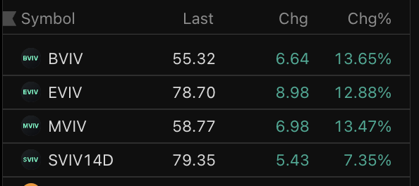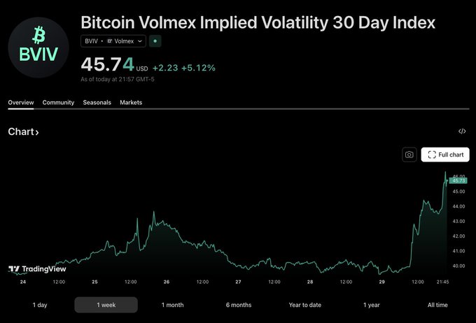 BVIV 지수가 오늘 약 6.5포인트, 즉 약 13.5% 상승했습니다! Volmex 지수연동형 선물/파생상품을 거래할 수 있는 거래소: 비트파이넥스(Bitfinex) 퍼페추얼 • BVIV: trading.bitfinex.com/t/BVIVF0:USTF0 • EVIV: trading.bitfinex.com/t/EVIVF0:USTF0 이득(gTrade) 영구 • BVIV: gains.trade/trading#BVIV-USD… • EVIV: gains.trade/trading#EVIV-USD… 폴리마켓 예측 시장 • BVIV: polymarket.com/event/what-will...… • EVIV: polymarket.com/event/what-will...… BVIV가 도처에!