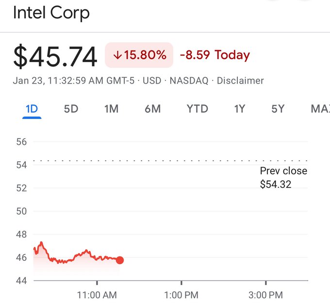 오늘 INTC 주가가 18% 하락했음에도 불구하고, 미국 정부는 2025년 8월에 매입한 INTC 주식으로 여전히 약 105억 달러, 즉 약 117%의 수익을 올리고 있습니다. 여기서 얻을 수 있는 교훈은 미국 국부펀드의 매매 전략을 따라 하라는 것입니다. twitter.com/ColeGotTweets/stat...