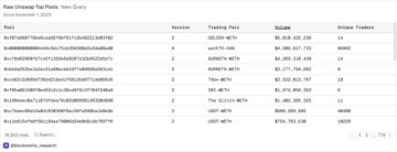 $UNI 허니팟 거래량과 수수료를 모두 걸러내고 Univ4의 잠재적 혼합 수수료 점유율 15%(Univ2는 16.7%, Univ3는 18-19%)를 추가하면 FDV/BBB의 35배에 해당합니다. 시장 상황이 호전된다면 좋은 주가를 기록할 것으로 예상합니다. 쿼리: dune.com/queries/6193681 twitter.com/tumilett/status/19...