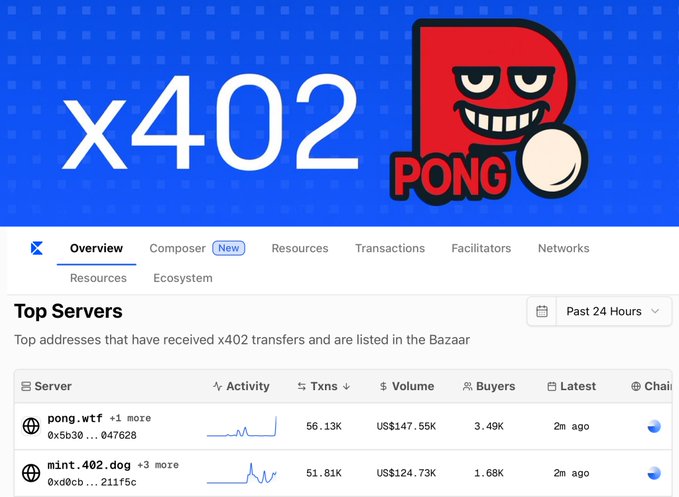 내 나쁜 G $PONG 민트(Mint) 모든 x402 거래의 20%를 담당했습니다.