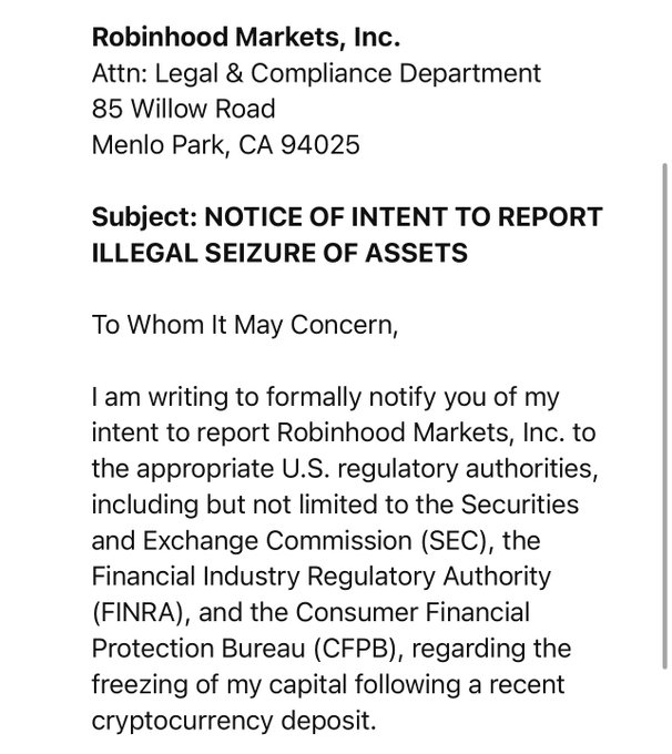 2개월 전 웰스파고는 제미니(Gemini)로부터 입금한 돈 후에 내 계좌를 동결하고 폐쇄했습니다 오늘 @RobinhoodApp은 USDC를 입금한 후 내 계좌와 자본 인출 능력을 동결했습니다 로빈후드, 이메일을 확인하세요!