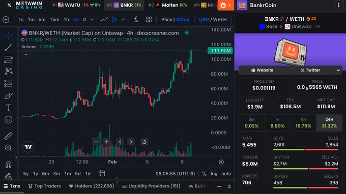 BNKR, 30% 급등하여 1억 1100만 달러 돌파하며 새로운 지역 최고가 경신 새로운 수수료 시스템을 갖춘 토큰 런처 출시 이후