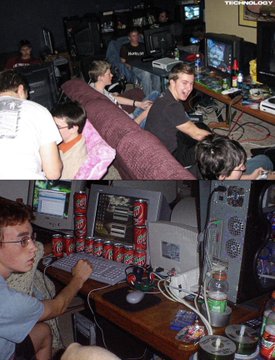 LAN 파티는 고속 인터넷이 존재하기 전, 게이머들이 멀티플레이어 게임을 함께 즐기기 위해 PC, 대형 CRT 모니터, 이더넷 케이블 등을 한곳에 모아놓고 접속했던 것을 말합니다.