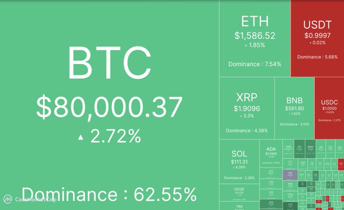 비트코인(BTC)이 80,000달러로 +2.72% 상승했습니다. 주요 알트코인들이 견고한 상승세를 보이며 시장이 녹색을 띠고 있습니다. 이더리움(ETH)(+1.85%), 솔라나(SOL)(+6.39%), 리플(XRP)(+3.3%). 오늘 시장 심리는 강세를 보이고 있습니다 🟢📈 #RoseonX에서 거래하세요 👉 dex.roseon.world/#/trade