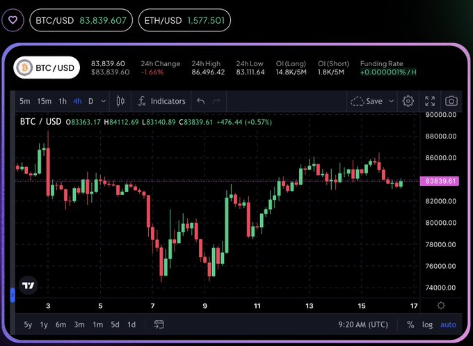 비트코인(BTC)이 1% 하락하여 83,600달러로 약세를 보였으며, 과열된 랠리 이후 냉각되고 있습니다. 차익 실현과 미중 긴장 관계로 인해 거래자들의 심리가 위축되었습니다. 이제 78,000달러 지지선에 주목하고 있습니다. 👀 <RoseonX>에서 거래하세요 👉 dex.roseon.world/#/trade