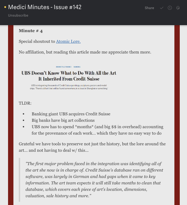 @코조모 메디치 분 제142호에서 이 호평을 받게 되어 자랑스럽습니다! 출처는 전통 및 디지털 예술에서 중요합니다. 하지만 웹3의 대부분의 예술가, 수집가 및 큐레이터들은 NFT가 블록체인에 있기 때문에 이미 이 문제가 해결되었다고 가정합니다. 스포일러 경고: 그렇지 않습니다 (🧵)