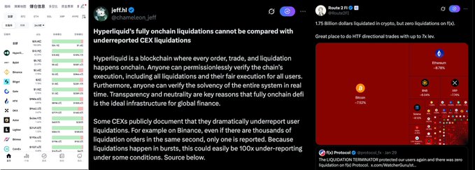 B) Jeff가 지적했듯이, 중앙거래소(CEX)의 청산은 실시간으로 보고되지 않으며, 종종 실제보다 적게 보고되거나 심지어 허위로 보고되는 경우가 많습니다.