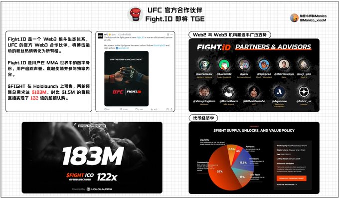 UFC의 공식 라이선스를 받은 온체인 팬 경제 플랫폼인 @JoinFightID가 TGE를 통해 곧 코인베이스와 바이낸스 알파에 상장될 예정입니다. Hololaunch에서 진행된 사전 판매 상품 $FIGHT이 마침내 TGE로 출시됩니다. 두 차례의 사전 판매를 통해 총 1억 8,300만 달러의 수요가 발생했으며, 이는 122배의 초과 청약으로 이어졌습니다. 세계에서 가장 영향력 있는 종합격투기 단체인 UFC는 막강한 팬층과 수익력을 자랑합니다. 또한, Fight는 코인업계 에서 공식 국제 스포츠 이벤트와 직접 파트너십을 맺은 드문 사례로, 올해 주류 시장으로의 확장 가능성이 가장 높은 프로젝트라고 할 수 있습니다. 사전 판매가 시작된 이후로 이 프로젝트를 면밀히 지켜봐 왔는데, 최근에 드디어 TGE에 대한 소식이 나와서 제가 이해한 바를 공유하고 싶습니다. Fight는 UFC 팬들에게 온체인 정체성을 부여하여 참여 기록을 지속적으로 남길 수 있도록 하는 플랫폼입니다. 구조는 매우 명확합니다. - http:/Fight.ID: 팬과 MMA 선수에게 제공되는 온체인 신원 정보 - FP(파이트 포인트): 양도 불가능한 참가 기록, 특권 및 보상을 획득하기 위한 자격 증명. - $FIGHT: 접근, 스테이킹 및 거버넌스를 위한 도구입니다. 예측 및 플레이어 보상에 사용되는 기존 팬 토큰은 지적 재산권을 과도하게 활용하는 경향이 있습니다. 가격 변동이 발생하면 열정은 시장 정서 에 의해 희석되는 경우가 많습니다. http:/Fight.ID는 보다 공평한 "수익 공유 관계"를 구축하기 위해 다른 길을 택했습니다. 이 시스템은 FP 포인트 제도를 활용하여 순수한 재정적 게임을 분리하고, 진정한 팬들이 활동을 통해 얻을 수 없는 평판 자산을 축적할 수 있도록 합니다. 이러한 메커니즘은 개인 투자자 더욱 명확한 수익 논리를 제공합니다. 팬들이 상호작용할 때, 복서들은 온체인 보너스와 홍보 효과를 얻습니다. 복서들이 경기를 펼칠 때, 팬들은 토큰화된 독점 권리와 보상을 통해 이벤트 경험을 공유합니다. 팬들의 지갑에서 일방적으로 돈을 빼가는 대신, 이 프로토콜은 팬들의 관심으로 창출된 상업적 가치를 공정하게 관전 포인트로 돌려줍니다. 이처럼 적극적인 사용자들에게 도달하고자 하는 브랜드는 $FIGHT 토큰을 구매하고 소각해야 합니다. 이는 생태계 내 자금 흐름에 외부 광고 및 스폰서십 비용이 포함되기 시작했음을 의미하며, 토큰 보유자와 활성 사용자가 생태계 성장의 혜택을 직접 공유할 수 있게 해줍니다. 실제로 상업 스포츠 팬 경제는 온체인 으로 이전하기에 매우 적합합니다. 예를 들어, 팬 고유의 신원 확인, 선수 카드 및 상품 판매를 위한 RWA 마켓플레이스, 그리고 예측 시장은 모두 Web3를 통해 개발하는 것이 더 효율적입니다. 이것이 바로 Fight가 시장에서 널리 주목받는 이유 중 하나입니다. 포인트 이벤트는 현재 다섯 번째 시즌을 진행 중이며 1월 25일에 종료됩니다. 파이트 ID를 등록하고 미션을 완료하여 FP(파이트 포인트)를 획득할 수도 있는데, 이는 TGE(얼티밋 게임) 직전의 마지막 포인트 획득 기회가 될 것입니다. 참여는 무료이니, 미리 대비하는 차원에서 참여해 보시길 추천합니다. app.fight.id/signup?code=07800...… twitter.com/Monica_xiaoM/statu...
