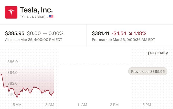 NHTSA의 $TSLA 비전 카메라 고장 관련 엔지니어링 분석 보고서로 인해 개장 전 거래에서 주가가 약 1% 하락했습니다.