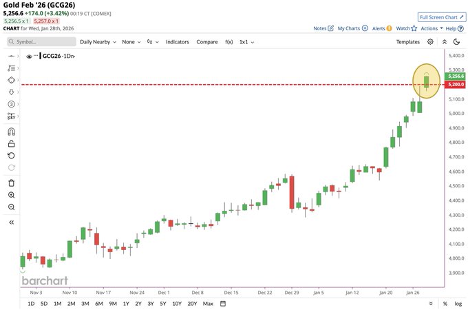 금값이 사상 처음으로 5,200달러까지 치솟았습니다 📈📈