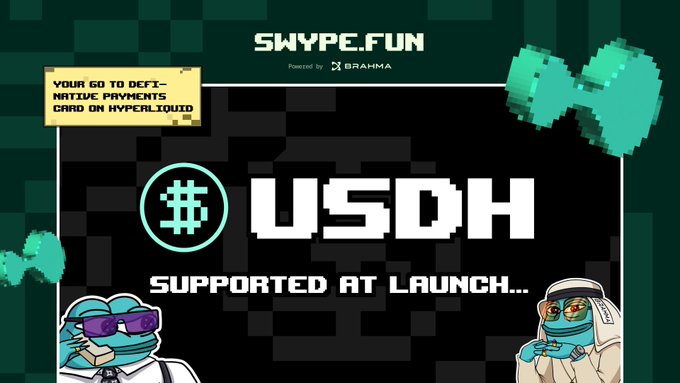 Swype 카드는 출시 첫날부터 USDH 지원을 시작합니다! @HyperliquidX의 네이티브 스테이블코인으로 전 세계 1억 개 이상의 가맹점에서 암호화폐를 즉시 사용할 수 있습니다. http:/Swype.fun은(는) 하이퍼코딩되었습니다!