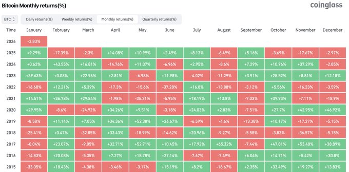 좋은 아침입니다, 금요일! $BTC의 1월은 마이너스로 마감될 가능성이 매우 높습니다. 만약 그렇게 된다면 4개월 연속 하락세가 될 것입니다. 마지막으로 이런 일이 있었던 것은 2018년으로, 당시 6개월 연속 하락했고 2019년 2월에 하락세가 끝났습니다. 더 이상 팔 물량이 없을 때, 시간이 매우 중요해질 것입니다. 단기적인 변동은 중요하지 않습니다. 장기적인 관점이 중요합니다. 현재 가격은 사상 최고치에서 약 35% 하락했습니다. 그리고 저는 이 가격에 다시 매수하고 싶지 않습니다. 시간은 제 편입니다. 가격이 더 떨어질수록 $BTC 매도 시점이 더 좋아질 것입니다. 매도는 항상 제게 마음의 평화를 줍니다. $BTC가 사상 최고치인 126,000달러를 기록했을 때, 제 매도 시점이 약해 보였던 기억이 납니다. 그때 저를 비웃었던 사람들에게 "당신들은 더 나은 매도 시점을 맞이하길 바라지만, 아마 그렇게 되지는 않을 겁니다."라고 썼습니다. 제가 10%만 남겨둔다고 사람들이 비웃었지만, 저는 계획대로 했고, 만약 엄청난 시나리오가 펼쳐졌다면 그 정도면 충분했을 겁니다. 극단적인 시나리오를 피하려는 제 계획이 최적의 결과를 가져다주었습니다. 장기 투자를 고려하는 분들을 위해 간단히 말씀드리자면, 가격이 낮아질수록 미래에 더 좋은 결과를 얻을 수 있을 겁니다. DCA 전략에 대한 여러분의 계획은 무엇인가요? 저는 여전히 가장 큰 비중을 차지하는 비트코인(BTC) 10%, 이더리움(ETH) 90%, 알트코인(Alt) 40%, 그리고 알트코인(Alt) 50%를 보유하고 있습니다. 나머지 알트코인들은 언급할 가치도 없습니다. 😁 모든 매도와 수익에 자부심을 가지세요. 대부분의 사람들은 그렇게 할 수 없습니다.